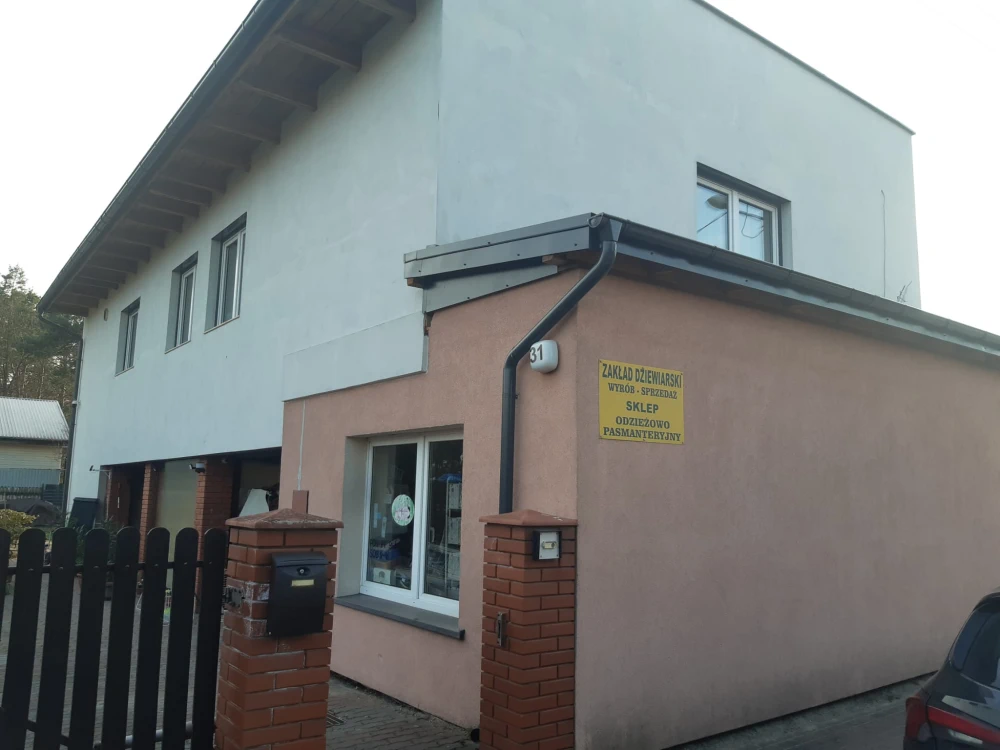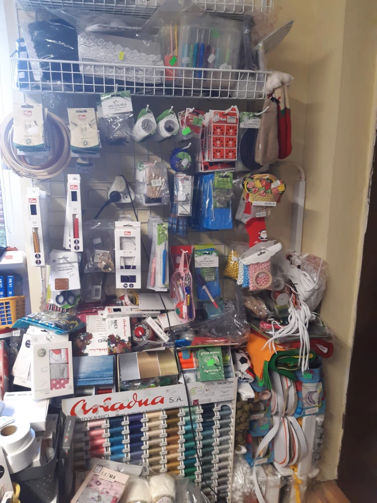 Sklep znajduje się na obrzeżach miasta Pobiedziska i jest jedynym w okolicy oferującym szeroką gamę artykułów pasmanteryjnych i nie tylko.